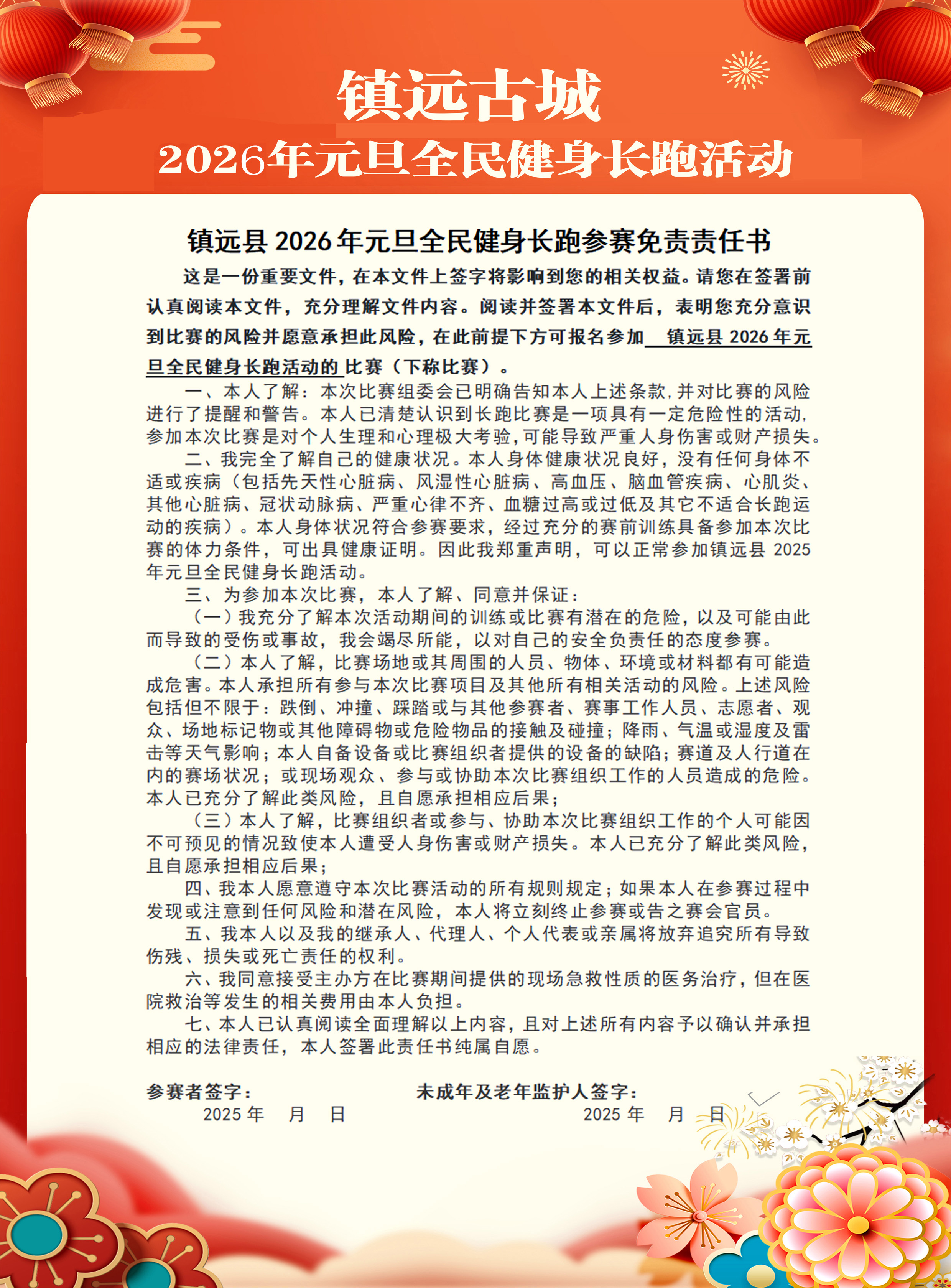 为积极响应“发展体育运动,增强人民体质”号召,贯彻落实《镇远县全民健身实施计划(2021-2025年)》,广泛开展群众性体育运动,促进我县社会主义精神文明建设,提高群众幸福指数,营造良好节日氛围,让大家开启一个欢乐、健康的新年,拟定在2026年1月1日举办2026年元旦全民健身长跑活动,现将有关事宜通知如下:
