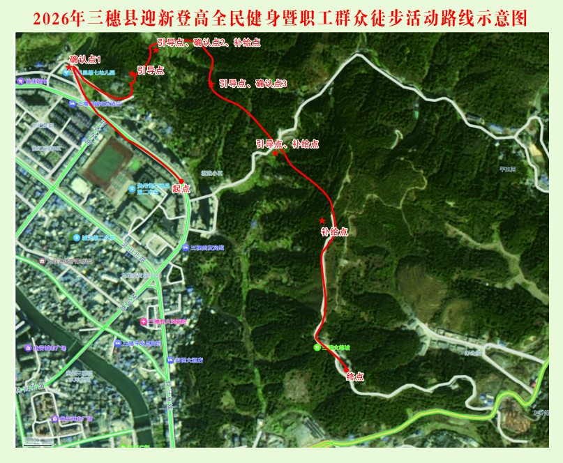 请参加2026年三穗县职工群众徒步暨全民健身活动的选手于2025年12月31日上午8:30前自行到三穗县塘边小区(起点)集中签到。