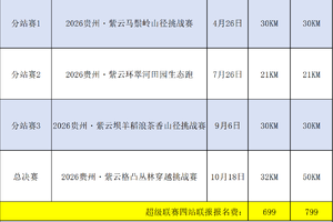 总决赛:2026贵州·紫云格凸丛林穿越挑战赛:设50KM追光组、32KM探秘组、8KM欢乐跑、8KM亲子组。